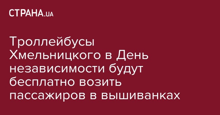 В Хмельницком в День Независимости, 24 августа, проезд для пассажиров в троллейбусах в вышиванках будет бесплатным.