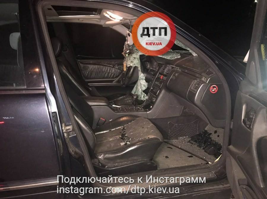 Ночью в Киеве пешеход внезапно выскочил из-за фуры и пробил лобовое стекло Mercedes