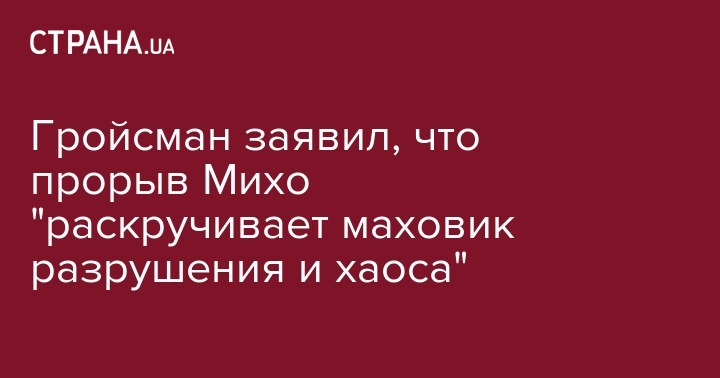 Гройсман заявил, что прорыв Михо "раскручивает маховик разрушения и хаоса"