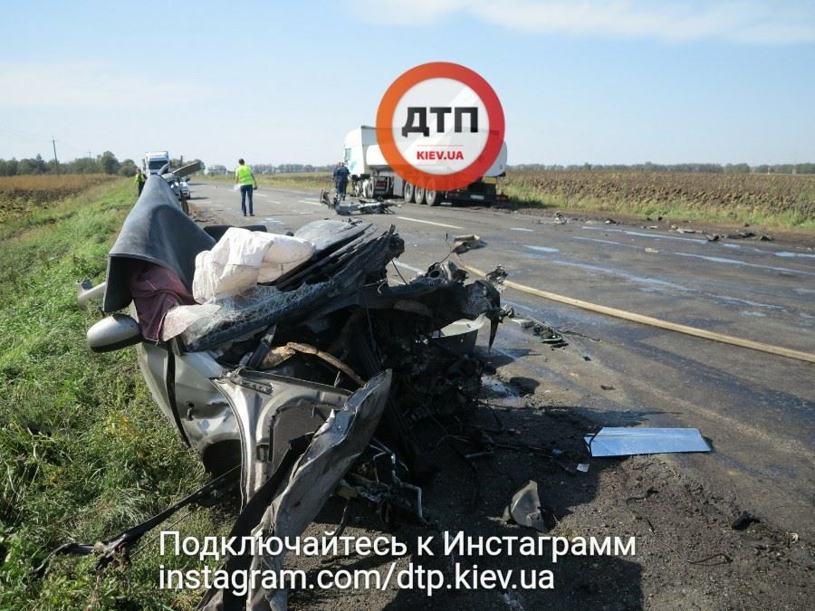 Под Киевом на окружной Борисполя случилось смертельное ДТП с участием Scoda Fabia и бензовоза DAF.