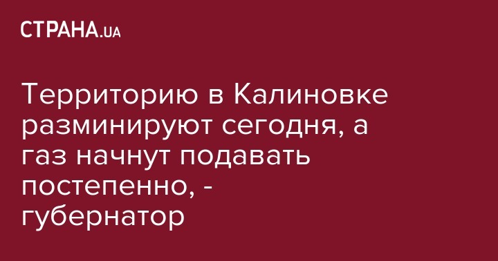 Территорию в Калиновке разминируют сегодня, а газ начнут подавать постепенно, - губернатор