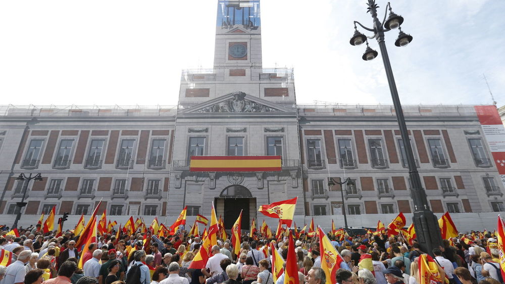 15:17 В Мадриде несколько сотен сторонников единой Испании вышли на митинг, передает издание El Espanol.
