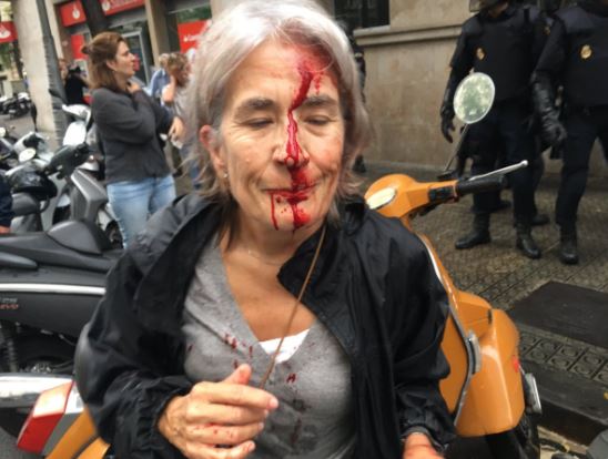 This is how the Spanish Police are treating elderly women trying to vote in the #catalanreferendum pic.twitter.com/qxJMdQig2Y via AltoyClaro1…