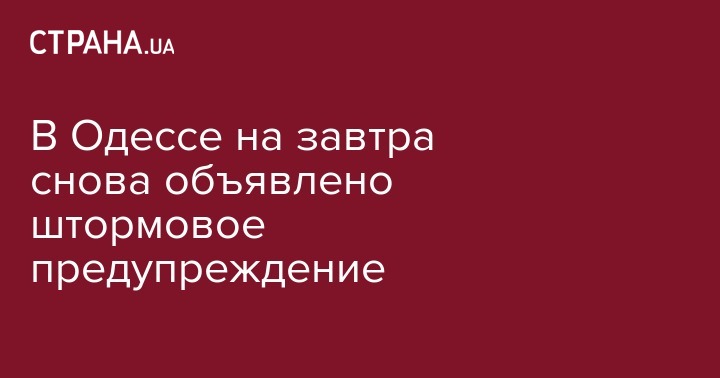 В Одессе на завтра снова объявлено штормовое предупреждение. Об этом сообщил Гидрометцентр Черного и Азовского морей, передает "Думская".