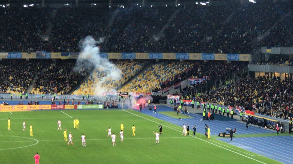 27 Фанаты скандируют "Україна понад усе", "Слава Україні, героям слава". "Хто не скаче, той москаль", "Путин х..ло". Тут только остается добавить, что на этом матче сборная Украины борется за право поехать на чемпионат мира в Россию.
