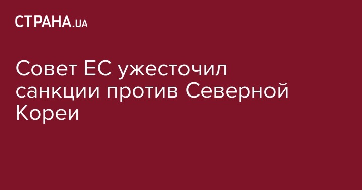 Совет ЕС в рамках выполнения решения Совета Безопасности ООН ужесточил санкции ЕС против КНДР в ответ на "активность Северной Кореи в сфере ядерных вооружений и развития баллистических ракет, за нарушение и явное пренебрежение предварительным резолюциями Совета Безопасности ООН".