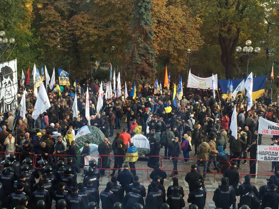 Во главе колонны шел Михаил Саакашвили и нардеп Серей Лещенко. Они подошли к кордону и полиция их пропустила, а с ними и большую часть людей.