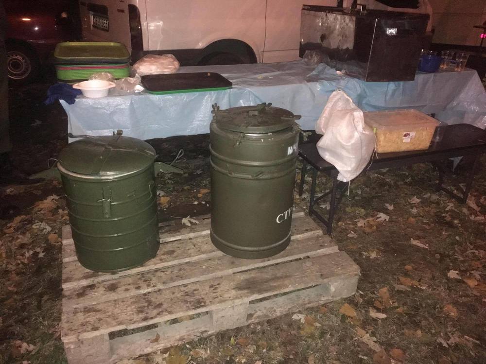 А бойцов Нацгвардии кормили борщом, пловом и квашеной капустой. Еду привезли в специальных контейнерах, сохраняющих температуру.