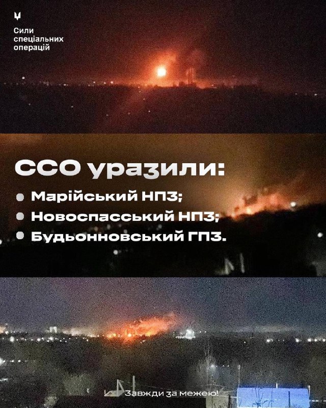 14.41 Генштаб ВСУ заявляет о поражениии трех российских нефте- и газоперерабатывающих заводов за ночь: