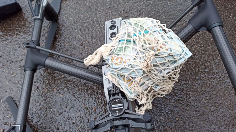 На опублікованому відео з камер спостереження є кадри з безпілотником із грошима у сітці та фейковими обмінниками.