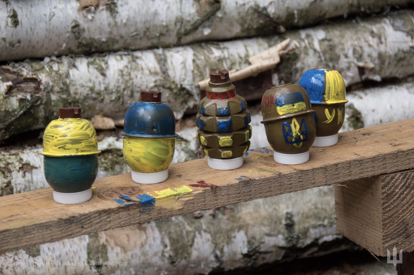 Замість яєць бійці ЗСУ на фронті перед Великоднем розписують гранати. Про це повідомляє прес-служба оперативного командування "Північ".