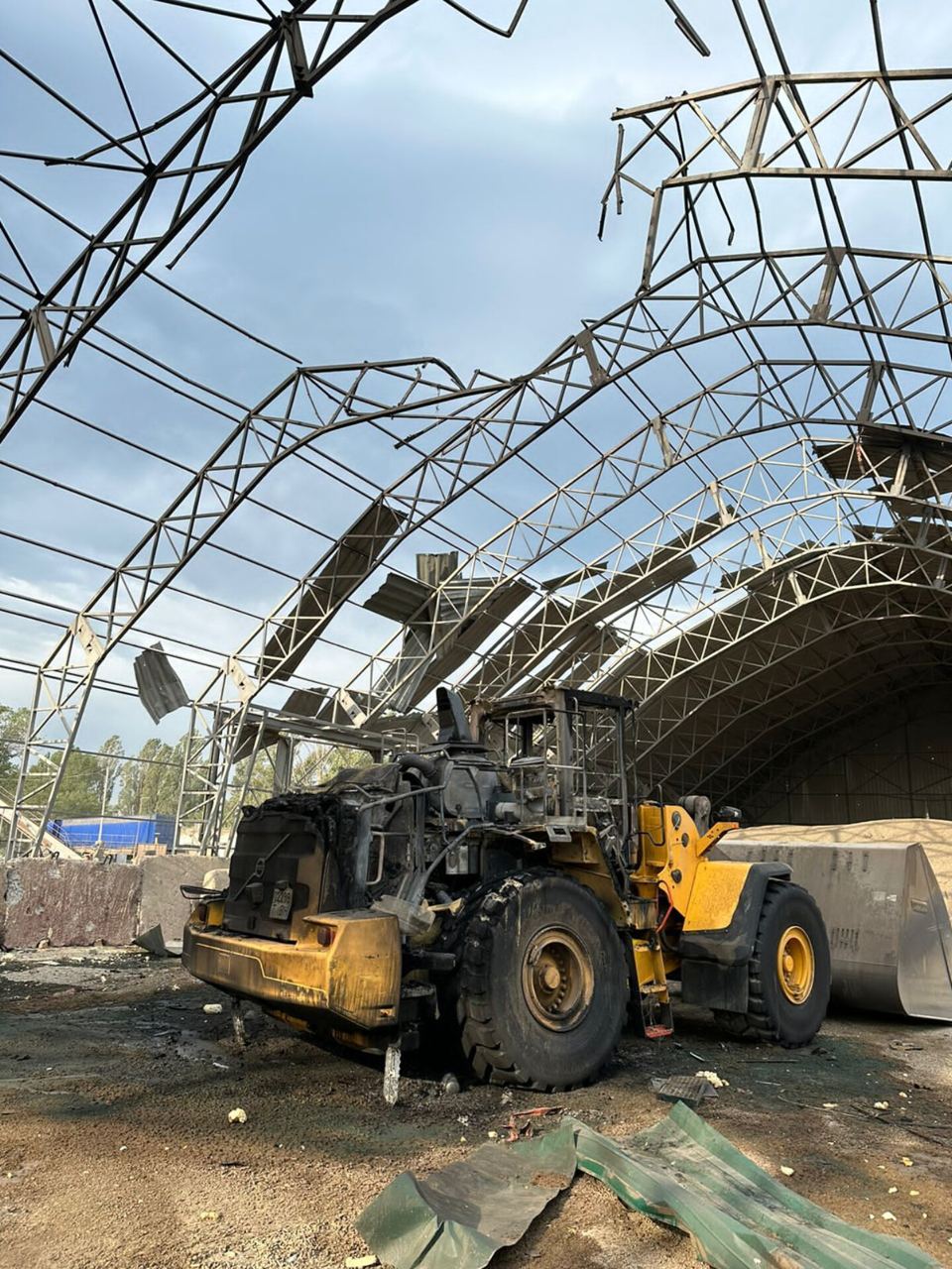 "Територія ДП "Ренійський МТП". Внаслідок влучення російського БПЛА до двох металевих складів ангарного типу виникло загоряння двох тракторів, виявлено загоряння шроту в розташованому поруч складі на площі 10 кв. м", - написав Єрмак.