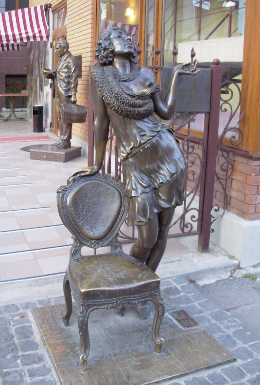 Скульптури зображали персонажів відомої книги: Остапа Бендера, Кісу Вороб'янінова та Еллочку Щукіну. Вони були встановлені на вулиці Ярослава Мудрого.