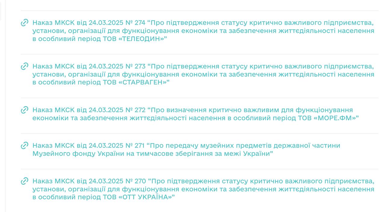 11:32 Мінкульт продовжив можливість бронювати співробітників музичним телеканалам М1, М2, Суспильному (НСТУ), криворізькому ТРК "Рудана" та прикарпатському виданню ПІК.