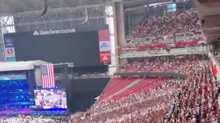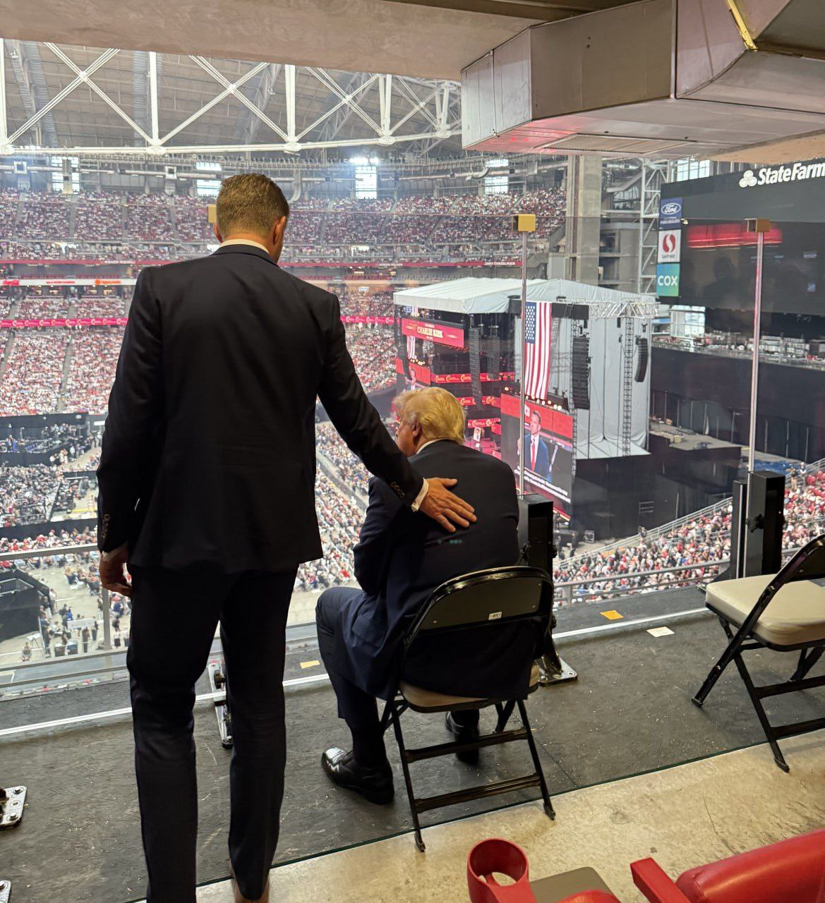 Також у Мережі з'явилося фото президента США Дональда Трампа та його сина Еріка, які прибули на стадіон State Farm для прощання з Кірком.