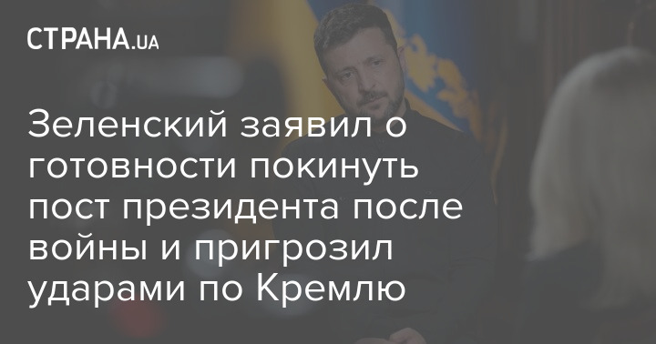 Зеленський заявив про готовність залишити посаду президента після війни і пригрозив ударами по Кремлю