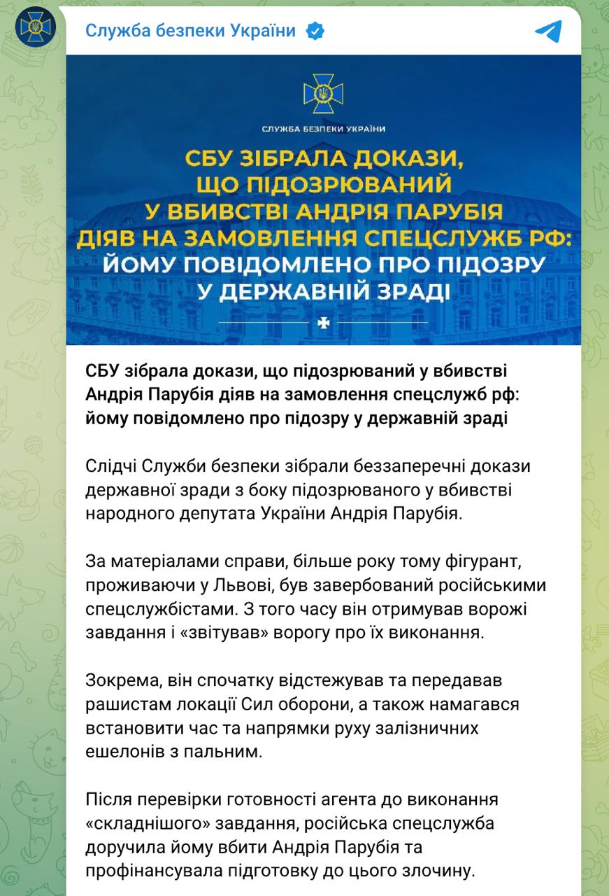 СБУ зібрала докази, що підозрюваний убивця Парубія працював на Росію