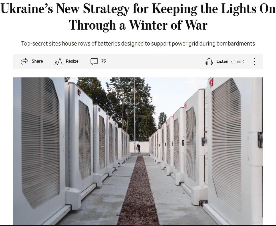 В Україні розгорнуто мережу акумуляторів американського виробництва, які мають допомогти мешканцям пережити зиму в умовах постійних російських обстрілів. Влада приховує місце розташування батарейних парків, а також засекретила заходи їх захисту, щоб не зробити ці об'єкти мішенню для атак.