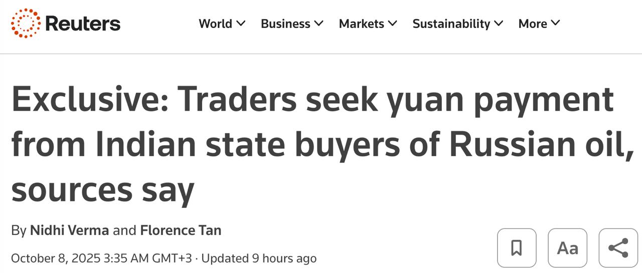 За інформацією видання, найбільший нафтопереробний завод Indian Oil Corp, який контролює держава, вже здійснив перші платежі в китайській валюті.