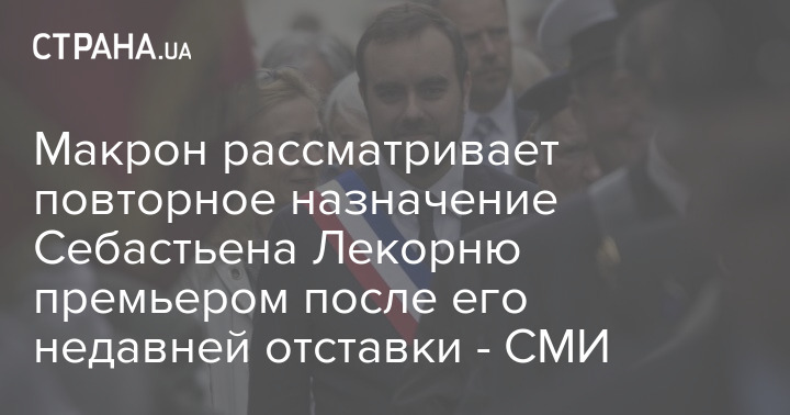 Макрон розглядає повторне призначення Себастьєна Лекорню прем'єром після його недавньої відставки - ЗМІ
