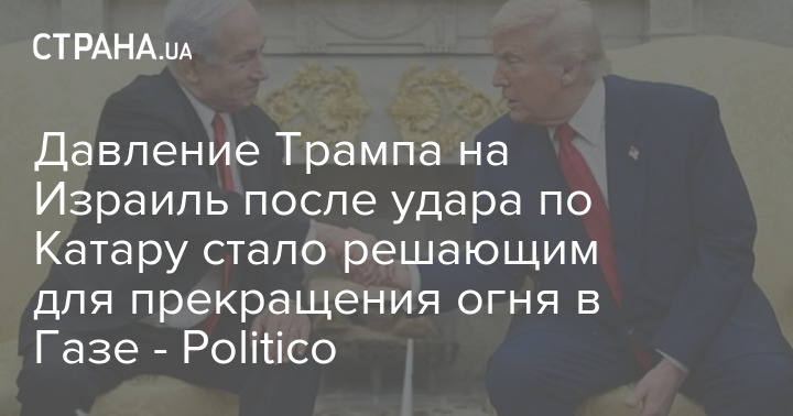 Жорсткий тиск президента США Дональда Трампа на Ізраїль після удару по Катару став відправною точкою для припинення вогню у секторі Газі.