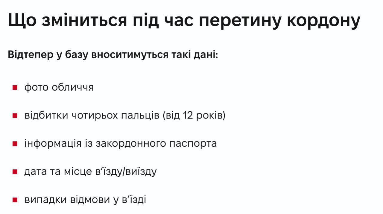 За даними відомства, система не зчитуватиме біометричні дані із закордонного паспорта, а фіксуватиме їх безпосередньо - при контролі на кордоні або в аеропорту робитимуть фото та зніматимуть відбитки пальців.