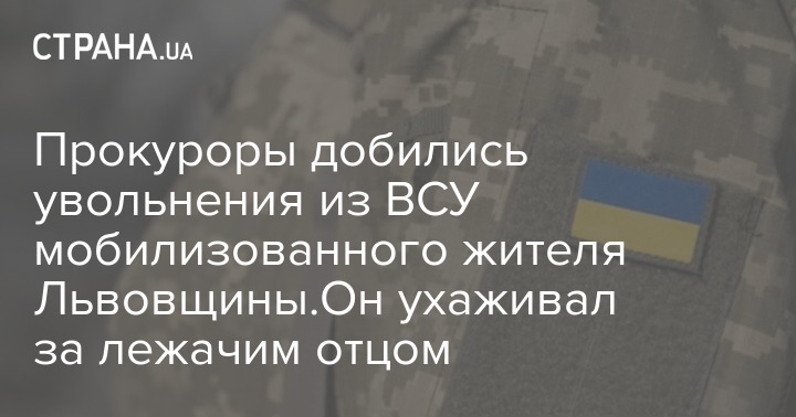Прокурори домоглися звільнення з ЗСУ мобілізованого мешканця Львівщини. Він доглядав лежачого батька.