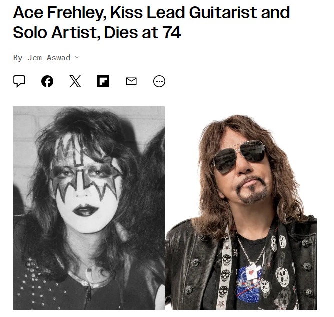У США помер Пол Деніел "Ейс" Фрейлі - співзасновник, вокаліст і провідний гітарист американського рок-гурту Kiss, який став піонером шок-року та хард-року. Йому було 74 роки.