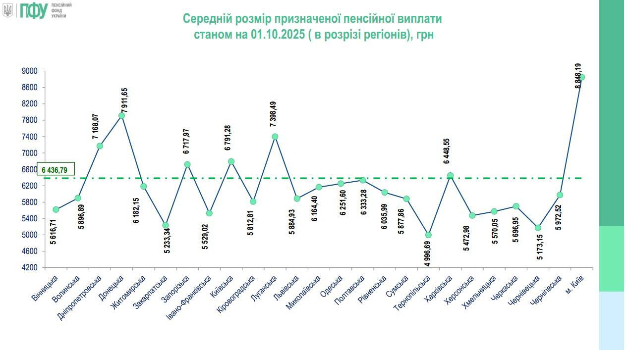 При цьому найвища середня пенсія у Києві – 8 848 грн, найнижча – у Тернопільській області – 4 996 грн.