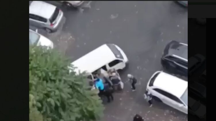 В одному з місцевих дворів міста Дніпро на парковці почалася масова бійка між цивільними та представниками ТЦК.