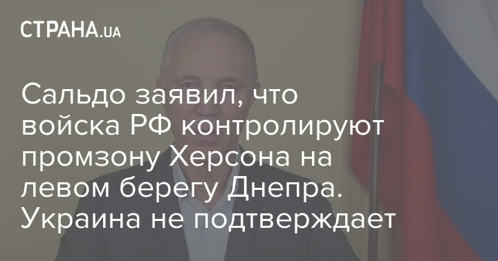 Призначений Кремлем "губернатор" Херсонської області Володимир Сальдо заявив, що російські війська контролюють промислову зону Херсона на лівому березі Дніпра, а також дачні селища на островах у пониззі річки.