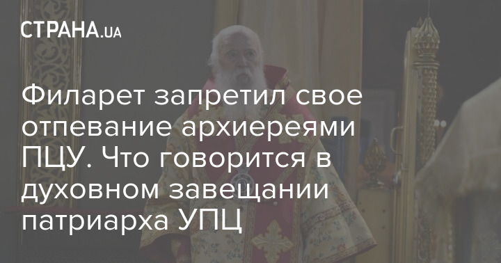 Філарет заборонив своє відспівування архієреями ПЦУ. Про що йдеться у духовному заповіті патріарха УПЦ
