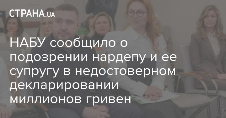 Національне антикорупційне бюро України (НАБУ) повідомило про підозру народному депутату та її дружину, голову обласної ради у недостовірному декларуванні на 8 млн грн.