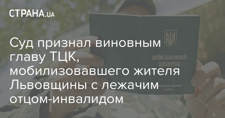 Золочівський районний суд Львівської області оштрафував виконувача обов'язків начальника Золочівського районного ТЦК та СП Богдана Ослабу за незаконну мобілізацію чоловіка, який є єдиним опікуном свого батька-інваліда.