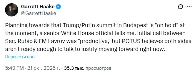 Тим часом, як повідомила газета Financial Times, Рубіо та Лавров зустрінуться 30 жовтня у Будапешті.