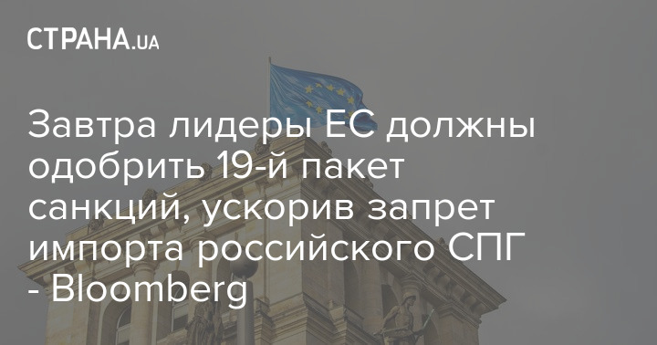 Завтра лідери ЄС мають схвалити 19 пакет санкцій, прискоривши заборону імпорту російського ЗПГ - Bloomberg