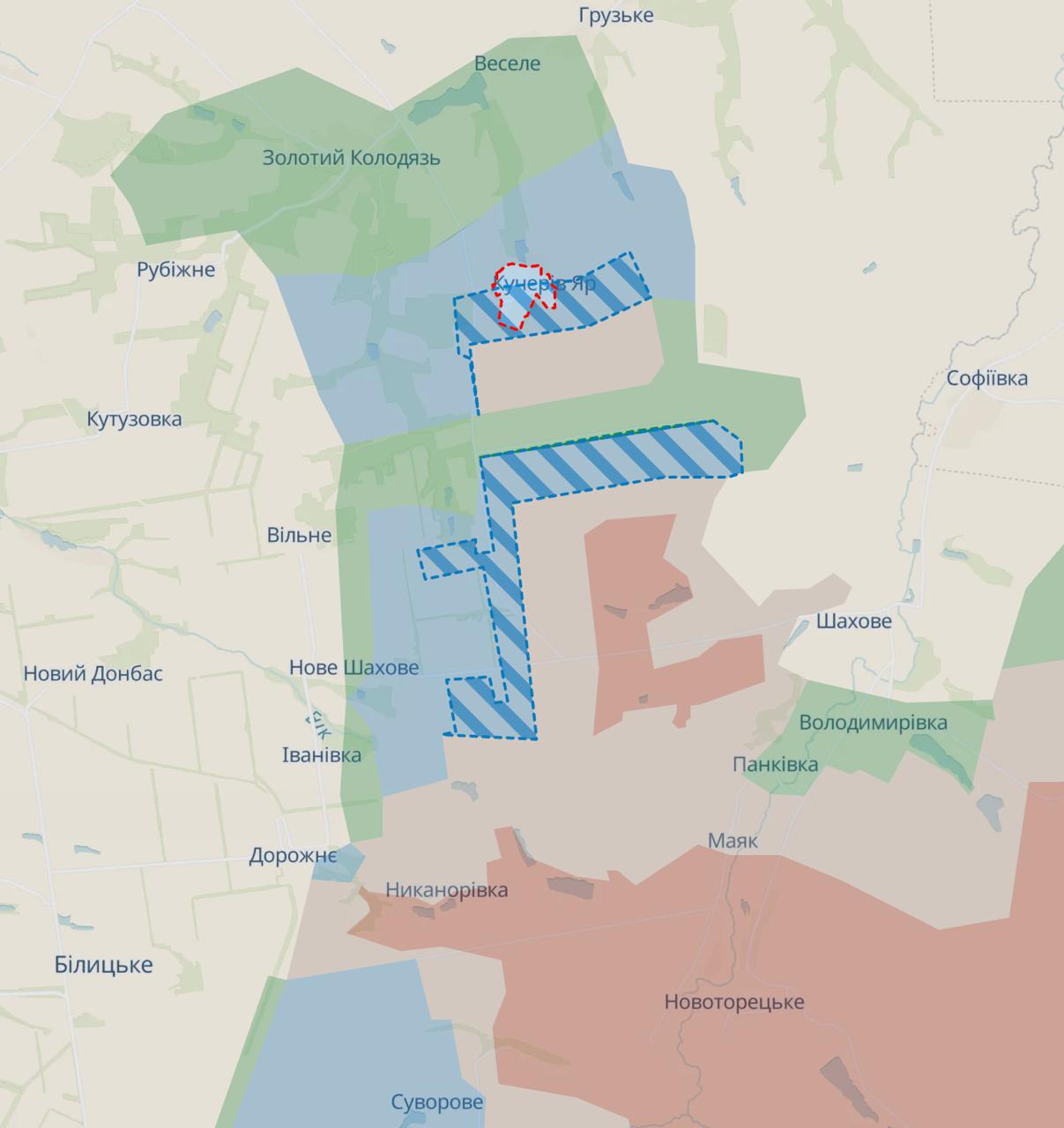За даними ресурсу, ЗСУ відновили контроль над населеними пунктами Кучерів Яр, Сухецьке та Затишок, а також відкинули супротивника поблизу Миканорівки, Нового Шахового та Федорівки.