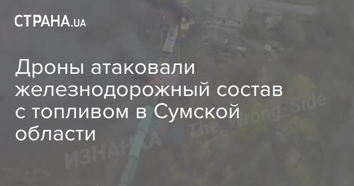 Як стверджується в публікаціях, на відео знято атаку "шахедів" за складом з паливом у районі села Чорноплатове Сумської області.