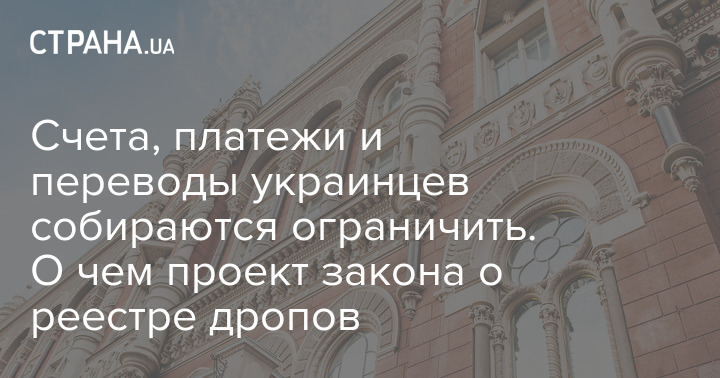У Верховній Раді зареєстровано законопроект №14161 про створення реєстру дропів (що передають рахунки стороннім за винагороду), який давно просував Нацбанк.