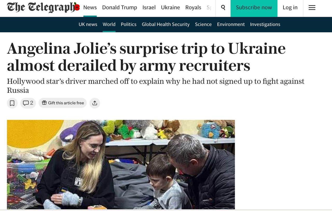 "Йдеться, що ці викриття викликали гнів урядовців у Києві, які не знали, що Джолі приїхала до країни з гуманітарною місією. Наразі вони розслідують, чому її конвой було зупинено, а поїздка ледь не зірвана співробітниками вербувальної служби", - йдеться у статті.