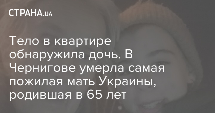 Тіло у квартирі виявила дочка. У Чернігові померла найстарша мати України, яка народила у 65 років