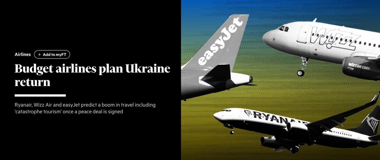 Великий лоукостер EasyJet, який раніше не працював в Україні, теж розглядає вихід на український ринок. Гендиректор Кентон Джарвіс назвав Україну майбутнім "найбільшим будівельним проектом Європи" і зазначив, що багато громадян захочуть повернутися додому, коли це стане безпечним.