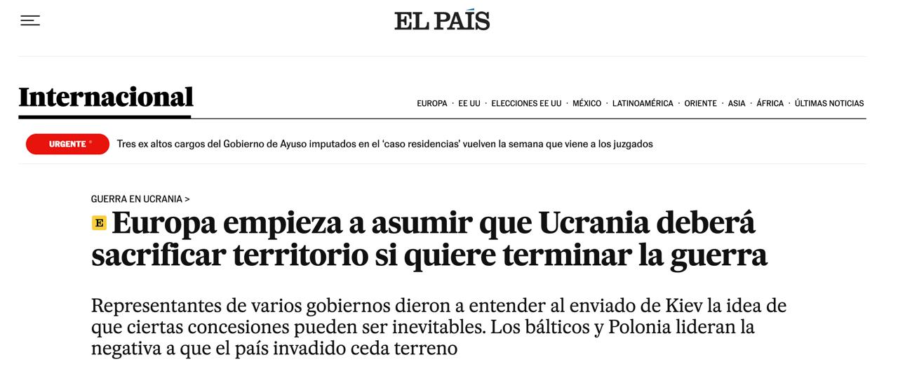 У Європі зростає розуміння необхідності значних територіальних поступок України для завершення війни.