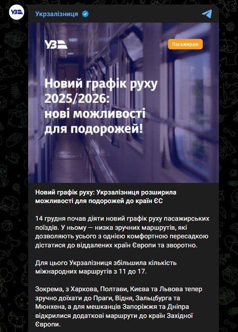 У новому графіку руху кількість міжнародних маршрутів збільшена з 11 до 17. Тепер пасажири з Харкова, Полтави, Києва та Львова можуть дістатися Праги, Відня, Зальцбурга та Мюнхена. Для мешканців Запоріжжя та Дніпра відкрито додаткові рейси до країн Західної Європи.