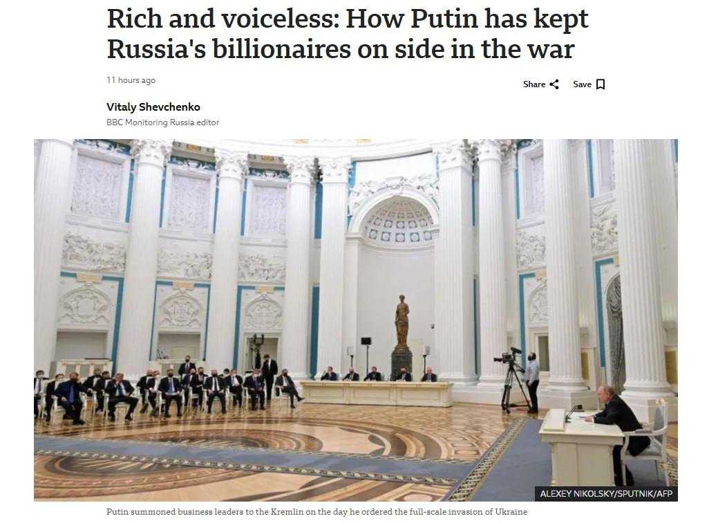 "Якщо хтось із них і розглядав можливість втечі на Захід зі своїми мільярдами, то санкції зробили це неможливим. Захід зробив все можливе, щоб російські мільярдери згуртувалися навколо прапора. Абсолютно не було жодного плану, ніякої ідеї, ніякого ясного шляху (у Заходу при плануванні санкцій - Ред.) для того, щоб з них, для того, щоб хтось із них - для того, щоб хтось з них - для того, щоб хтось з них - для того, щоб хтось з них - для того, щоб хтось із них - для того, щоб хтось із них - для того, щоб хтось із них - для того, щоб хтось з них - для них" Ред.) покинув країну. Активи були піддані санкціям, рахунки заморожені, майно конфісковано.
