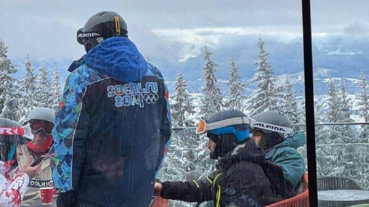 На гірськолижному курорті в Буковелі Івано-Франківської області відпочиваючі зняли чоловіка, одягненого в куртку з логотипом Зимової олімпіади 12-річної давності та написом "Сочі-2014".