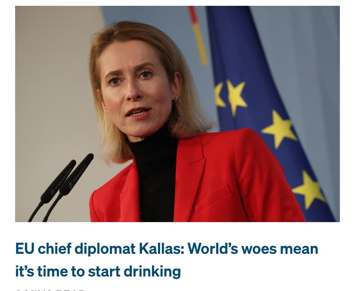 Верховний представник Європейського Союзу із закордонних справ та політики безпеки Кая Каллас під час зустрічі з політичними групами Євроради жартома заявила, що через ситуацію у світі зараз найбільш вдалий момент, щоб почати пити.