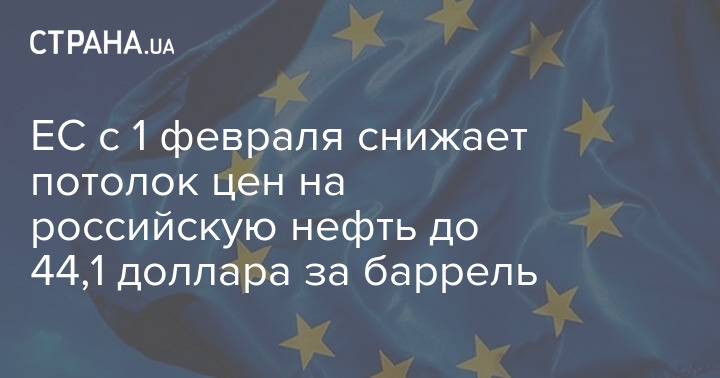 Європейський Союз із 1 лютого зменшить граничний рівень вартості російської нафти з 47,6 до 44,1 долара за барель.