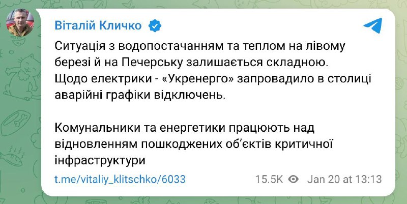 16:40 У Києві без тепла залишаються 4000 багатоповерхівок (вранці було 5635, це майже половина всіх багатоповерхівок Києва), повідомляє мер Кличко.