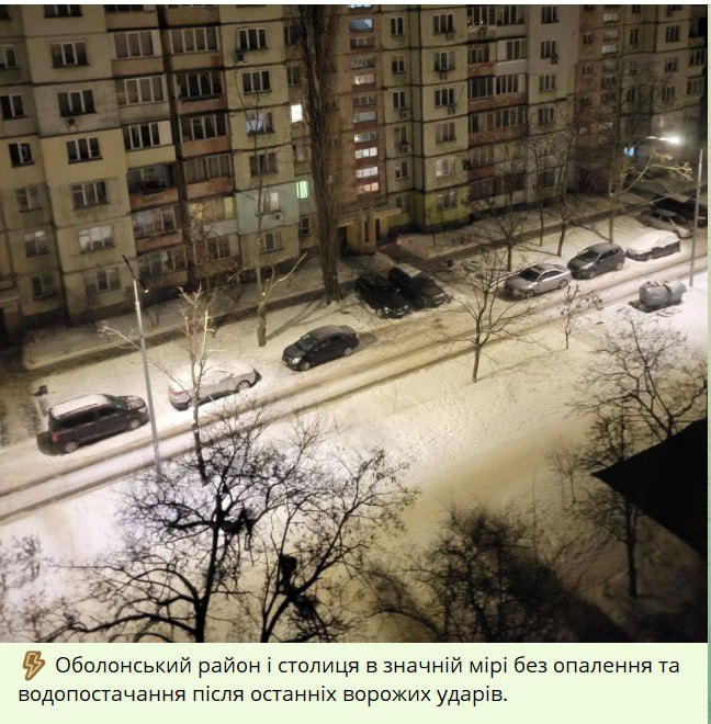 16.53 Про ситуацію на лівому березі Києва розповідає мешканець Позняків: "Світла, води та опалення немає. Батареї льодіють, і в квартирах холодно. А ще зник зв'язок. Голосовий зв'язок ще хвилями пробивається, а ось мобільного інтернету тотально немає. Хором із сусідами намагалися додзвонитися до "Київстару", але це неможливо Заявляючи, що немає вільних консультантів. Так уже кілька годин.